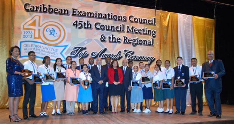 OUTSTANDING achievers at the May 2013 Caribbean Examinations Council (CXC) examinations were awarded at the opening ceremony of the 45th meeting of the Council, which was held at the National Cultural Centre last evening.