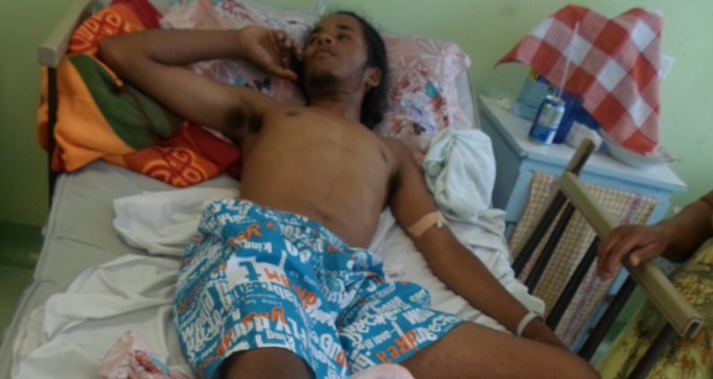 MOTOR-CYCLIST, Michael Anderson, 23, and pillion rider Clovis Drepau, 24, both of Mibicuri South, Black Bush Polder, Corentyne, are warded at the Male Accident Ward of the Georgetown Public Hospital, suffering fractured and smashed right legs after being involved in an accident with a motor car on the Mibicuri Public Road.