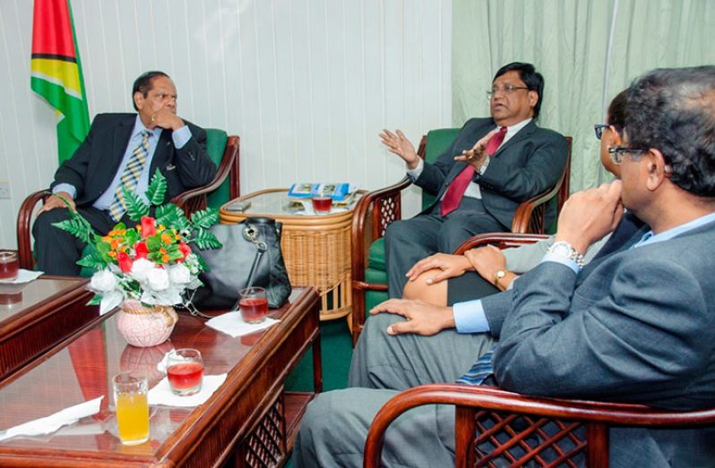 PROMINENT Indian lawyer and business executive Dr. V.R.S. Sampath visited Guyana during the past week and held talks with Prime Minister Moses Nagamootoo and other key Government and private sector officials, including the Private Sector Commission and the University of Guyana, in regard to bringing investors to Guyana.A release from the Office of the Prime Minister has said that Dr. Sampath, a native of Tamil Nadu, is President of the Madras Development Society and founder of the World Tamils Economic Foundation, both of which network with strategic investors worldwide.