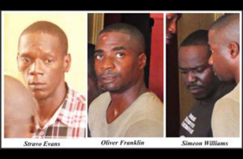City Magistrate, Judy Latchman, committed Simeon Williams, of Lot 36, Savage Street, West La Penitence, Stravo Evans of 169 Middle Road La Penitence and Oliver Franklin of 102 Parfaite Harmonie, West Bank Demerara, when the Preliminary Inquiry (PI) into the matter concluded on Monday.