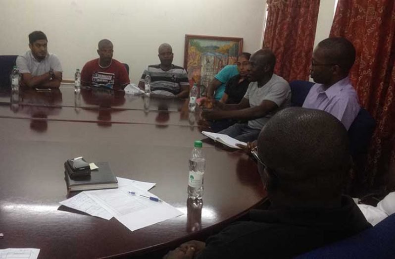 The contractors were among those who bid for a number of nine projects, seven of which were non-responsive, a release from the Ministry of Communities noted. The group met with Permanent Secretary (PS), Emil McGarrell and Procurement Manager, Michael Blackman in the boardroom of the Ministry’s Fort Street, Kingston office.