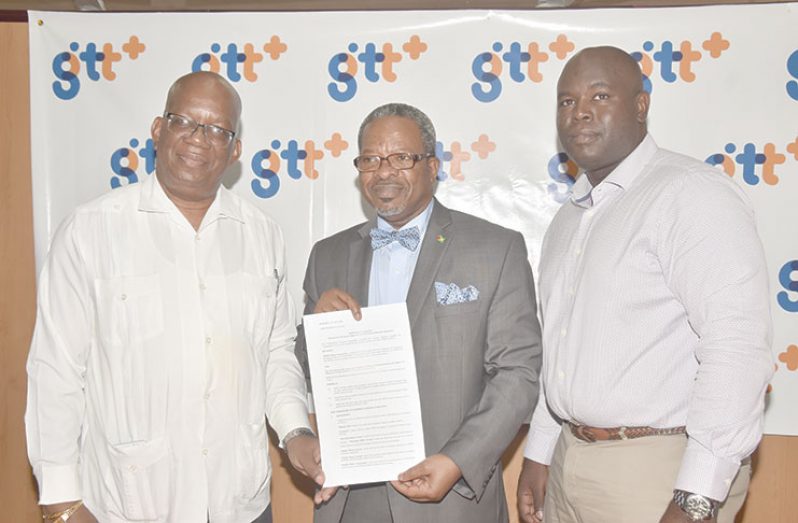 The deal, which will see students using the Mobile Money Guyana (MMG) app, was agreed to at the Student Loan Agency office at the university’s Turkeyen Campus by GTT’s Mr Justin Nedd, and Finance Minister, Mr Winston Jordan.