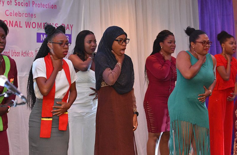 What really brought the crowd of mostly women to its feet were dramatic presentations from a choral group depicting the struggles of Guyanese women and their continued perseverance, as well as an energetic performance from Calypso Monarch, Onikha Joseph.