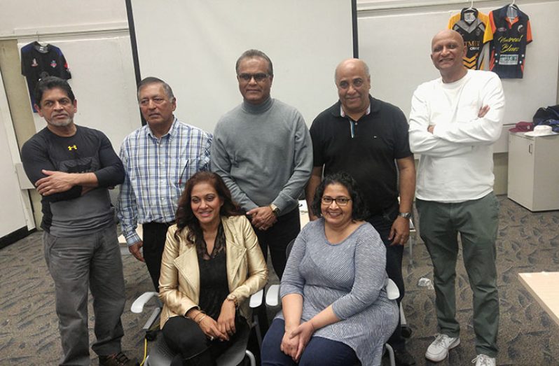 OMSCC executive members: Standing (from left) are umpires coordinator Dickey Singh, president Azeem Khan, treasurer Khem Singh, vice-president Feizal Bacchus and Over-50 coordinator Paul Jaman. Sitting (from left) are secretary Shanta Persaud and web content administrator Indira Singh.