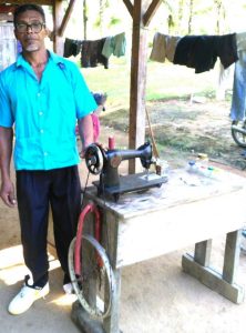 This is so despite the fact that his makeshift sewing machine prevents him from fully utilizing both hands since one has to spin a bicycle rim which turns the machine. The Castellos live at the village of Cabora, which is a satellite community to Santa Rosa.