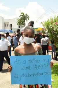 CHANTING the words ‘No justice, no peace’ and ‘Black Lives Matter,’ scores of Guyanese showed up at the Square of the Revolution better known as ‘Cuffy Sqaure’, on Tuesday, to protest the brutal killings of 19-year-old Joel Henry and 16-year-old Isaiah Henry.
