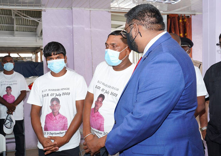 “Today is another sad day in our country. I share the sorrow and would have made many statements on this issue. I believe the Guyana Police Force, with requested support from regional institutions and the British Government, will allow us to bring all these criminals, who perpetrated these acts, to justice,” the President told reporters after the viewing.