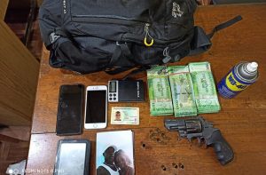 Police found in his possession a black haversack containing clothing, $2.3M cash, one digital scale, two cellphones– one of which belongs to the victim– one .38 special revolver with five live 9mm rounds, one .38 spent shell and three 9mm spent shells.