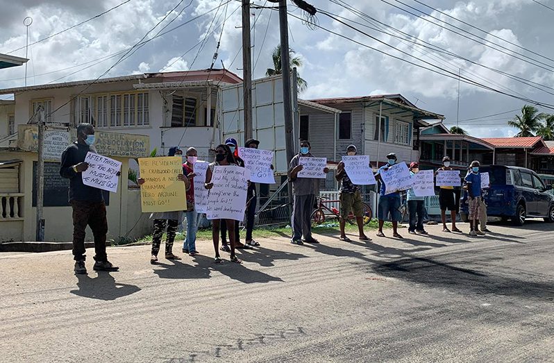 The residents, bearing placards, lined the roadway calling for the removal of Teerbhawandat “Tero” Arjun, the NDC chairman of 13 years whom they are accusing of stymieing development for the masses, while paying attention to only a select few.