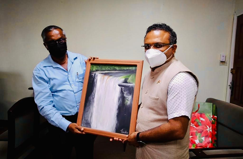 THE National Agricultural Research and Extension Institute (NAREI) has been invited to collaborate with the Indian Council for Agricultural Research (ICAR) to enhance agriculture in Guyana. This was confirmed on Wednesday when High Commissioner of India, Dr. K.J. Srinivasa, visited NAREI and interacted with Chief Executive Officer (CEO) Jagnarine Singh, scientists and researchers there. The High Commissioner also encouraged NAREI to upgrade its human resource capacity by sending personnel/scientists to India on fully-funded scholarships for masters and PhD programmes in agriculture. The diplomat also took a tour of the institute, including its laboratory and plant nurseries. The CEO briefed the High Commissioner about the activities undertaken by NAREI and its network in all regions of Guyana. During their discussion, attention was placed on NAREI and ICAR’s collaboration in various crops such as rice, coconut, potato and other vegetables and fruits to improve the quality of farming and output.