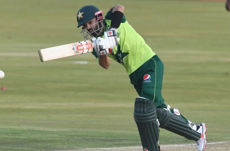 (ESPNCRICINFO) – Zimbabwe fell 12 runs short of beating Pakistan in a T20I for the first time after being well-set in chase of 150. A 56-run third-wicket stand between Tinashe Kamunhukamwe and Craig Ervine put Zimbabwe on 77 for 2 in the 11th over but Babar Azam’s masterstroke to use Mohammad Hafeez’s off-spin, after he had bowled only one over in 14 T20Is since November 2018, sparked a collapse. Zimbabwe then lost 4 for 18 in 18 balls and too much was left for the lower-order to do.. Luke Jongwe’s 30 off 23 balls almost pulled off a coup but Haris Rauf defended 20 off the last over to ensure Pakistan took the series lead. Pakistan’s total was almost single-handedly built by Mohammad Rizwan, who racked up his fifth score of 50 runs or more in his last eight T20I innings, and made 82 of their 149. No-one else contributed more than 15 runs.