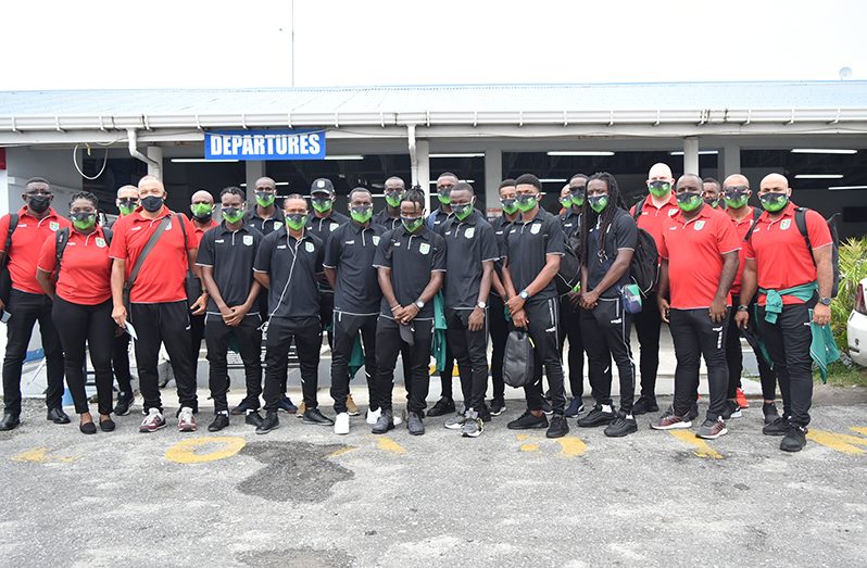 THE Guyana Senior Men’s National football team departed from Ogle airport yesterday to commence a training encampment in Antigua and Barbuda, ahead of their final two matches in round one of the CONCACAF 2022 FIFA World Cup qualifiers.