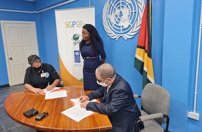 The GEF SGP Guyana also signed a Memorandum of Agreement with the Guyana Marine Conservation Society for the implementation of a US$145,000 project in Region One titled developing tools for collaborative management of the Barima-Mora Passage Mangrove Area. The project is multifocal and focuses on creating enabling conditions to empower Region One indigenous stakeholders to enhance their environmental stewardship to conserve, monitor and co-manage the area, in collaboration with the relevant government agencies whilst benefitting from their natural resources, the release noted.