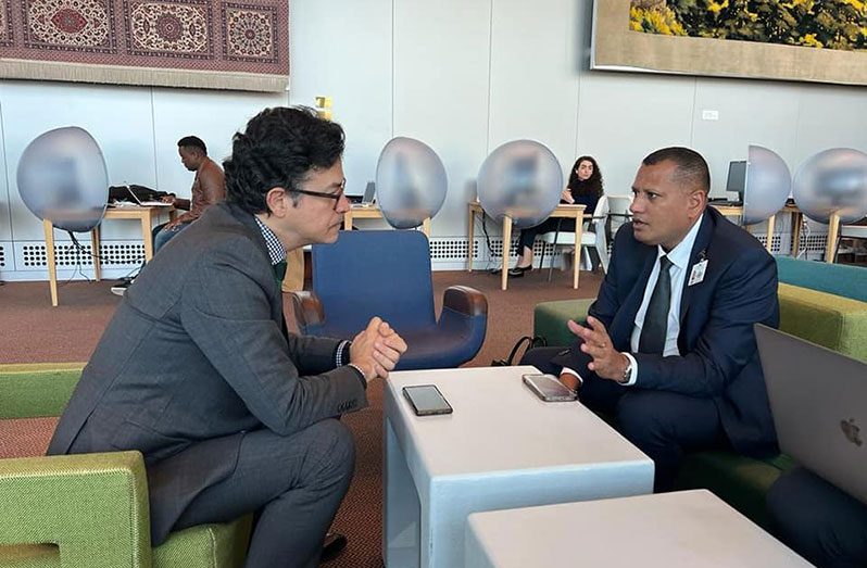 MINISTER of Housing and Water, Collin Croal and Director of UN-Habitat for Latin America and the Caribbean, Elkin Velasquez, met at the sidelines of the recent UN High-Level Meeting on the implementation of the New Urban Agenda in New York, USA where issues of adequate housing was discussed.