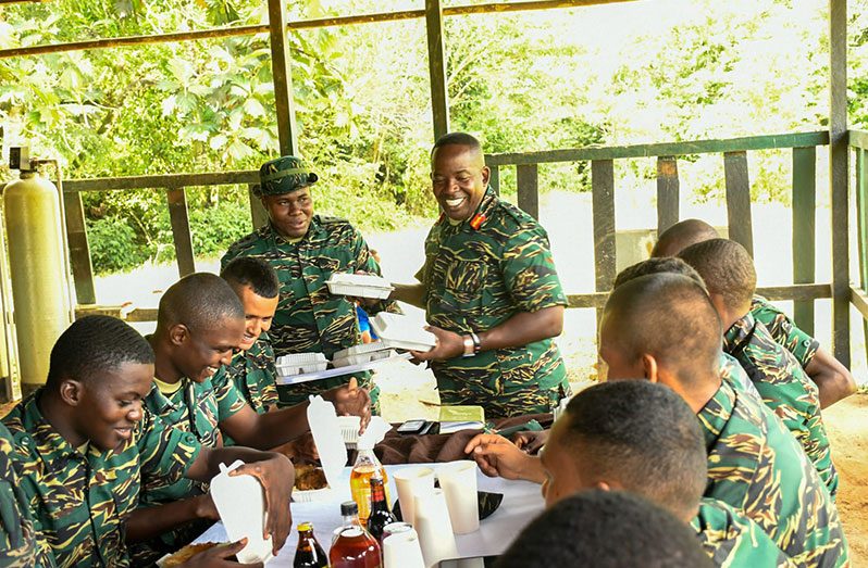 These soldiers are the first batch to have enjoyed traditional SOLDIERS’ DAY’ activities. After being awoken to the traditional ‘brew’, the ranks, who will be serving at the border location throughout the holidays, were, on Tuesday, treated to lunch with Chief-of-Staff Brigadier Godfrey Bess, his team of Officers, and residents of the surrounding community.