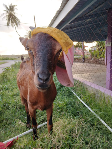 Her entry—a striking young black buck named “Jimmy”—is the pride of her farm. With guidance from GLDA Livestock Extension Officer Ms Carmelita Fleming and Veterinarian Dr Joel Dilchand, Molly has been meticulously grooming Jimmy for the competition—bathing him regularly, trimming his hooves, and ensuring his diet maintains an ideal body condition.