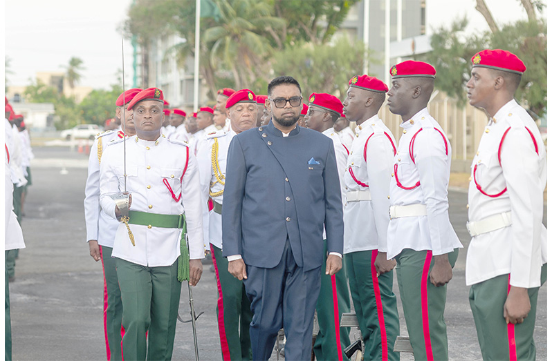 DISCIPLINE, excellence, and service formed the central message of President Dr. Mohamed Irfaan Ali’s address on Wednesday as he presided over the commissioning parade of the Guyana Defence Force’s (GDF) Standard Officers Course (SOC) #56.