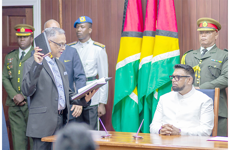 Justice Bulkan was officially sworn in at a simple but significant ceremony held at the Office of the President.
