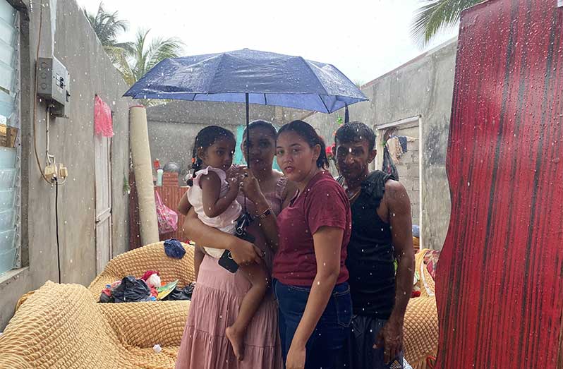 Among those severely affected is Deodat Samdatt of Lot 62 Lima Housing Scheme, whose wife, Haimwattie Sukhnandan, sustained head injuries when a beam fell on her. “I heard my wife crying out in pain, and when I ran to her, her head was bleeding profusely,” Samdatt recounted. “Over 33 zinc sheets were torn off my house. Everything is damaged — the children’s things, our furniture, all gone. We don’t know what to do.”