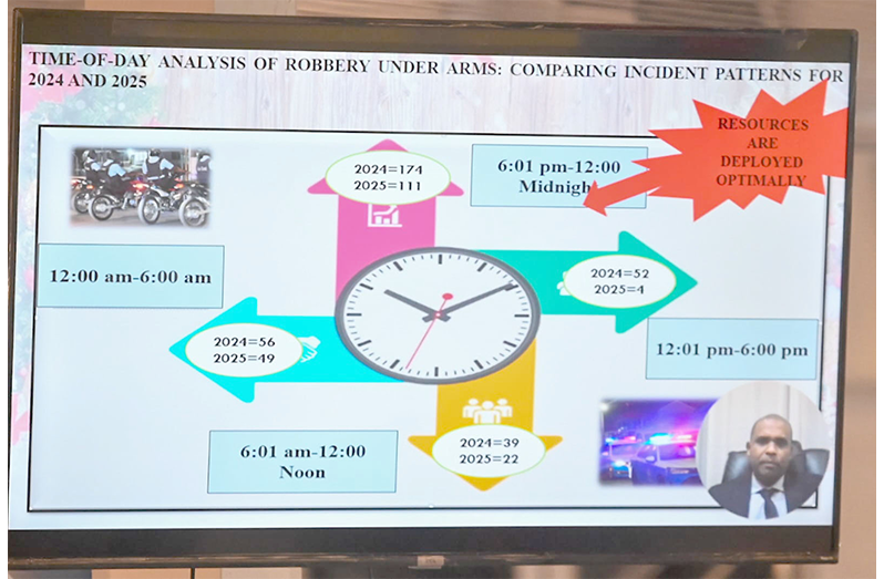 THE Guyana Police Force is closing 2025 with some of its strongest crime-fighting results in ten years, according to a detailed performance review presented by Crime Chief Wendell Blanhum during the GPF’s Christmas Policing Launch on Friday.
