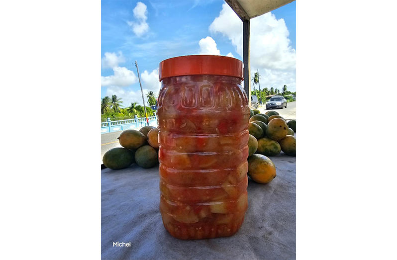 The Mon Choisi — formerly Number Five Village — West Coast Berbice resident, who lives on the main public road, finds it convenient to establish a roadside stall where she vends seasonal fruits, homemade lime pepper sauce, and mango achar.