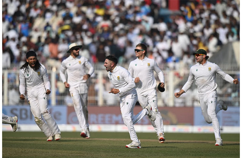 (ESPNCRICINFO) – South Africa started the day staring at defeat, only 63 ahead with three wickets in hand, but registered a stunning win, their first in India in 15 years and the second-smallest successful defence in Asia. The whooping and cheering among the South Africa players echoed amid a shocked Sunday crowd at Eden Gardens as the visitors bowled India out for 93 in the absence of their injured captain Shubman Gill.