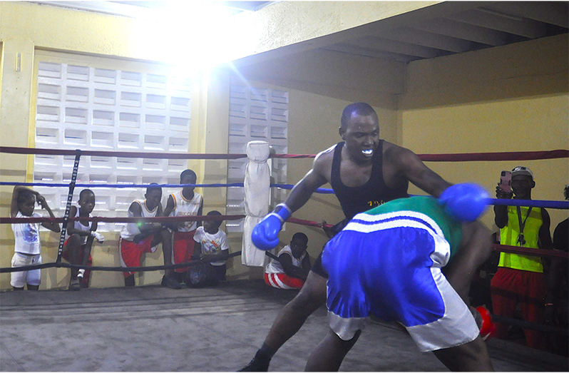 From the first bell, the two boxers went after each other with a flurry of energetic combinations, to the delight of the gathering of mainly young pugilists in the small gym named after Guyana’s first World Champion.