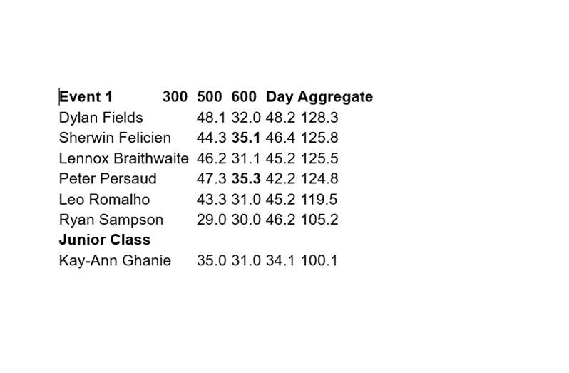 Both accomplished it at 500 yards, 35.1 and 35.3, respectively. The lone female, Kay-Ann Ghanie is competing in the junior class.