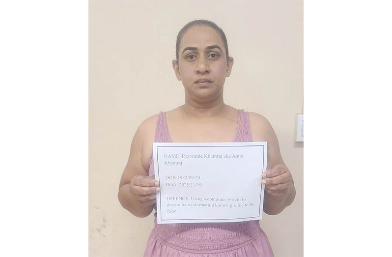 RAYWATTIE Khamraj, also known as Annie Khemraj, 43, of Richardstown, Lusignan, East Coast Demerara, has been charged in connection with an alleged cybercrime offence relating to false online information about Minister of Public Utilities and Aviation, Deodat Indar.