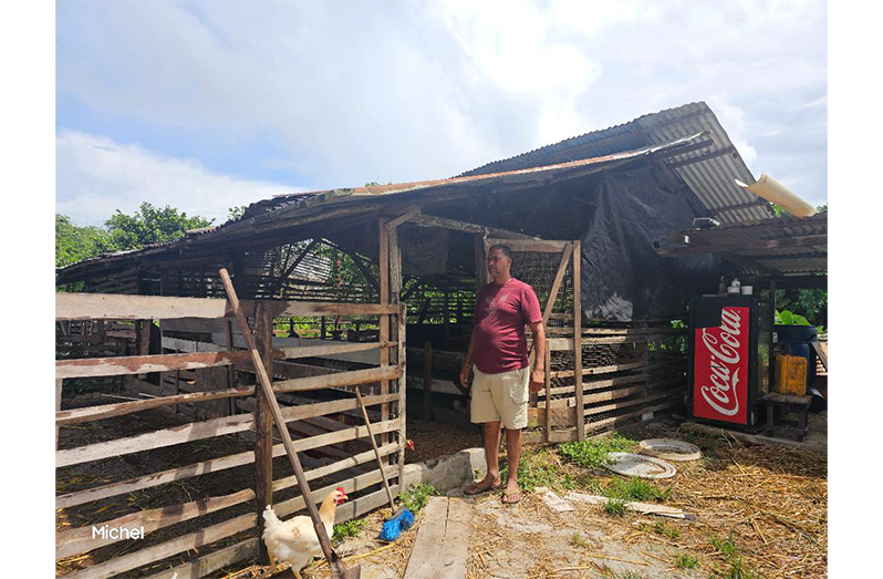 Farmer, Mahabeer Ramkissoon, at his backyard pen where he houses animals