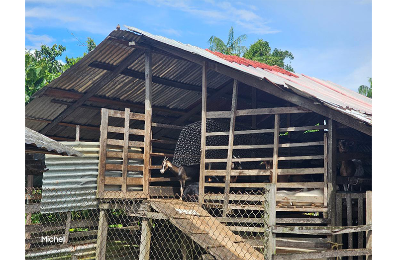 The elevated pen Mahabeer Ramkissoon constructed to safeguard the well-being of his goats