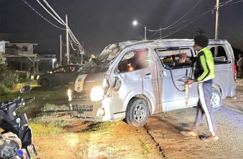 Police in Regional Division Six said the victim, Jodea Seline of Limlair Village, was among 18 occupants travelling in minibus BAB 7570 when the driver, a 31-year-old teacher from Brighton Village, reportedly lost control. The vehicle flipped onto its right side and was extensively damaged.