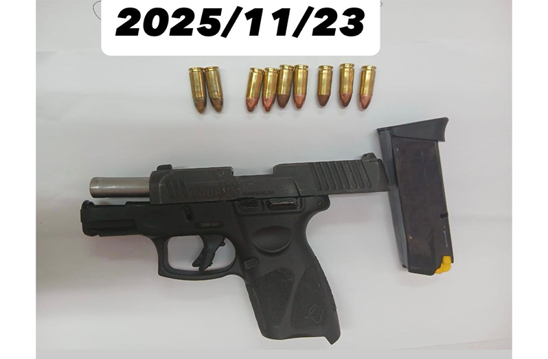 “Initial investigations indicate that a Taurus pistol with a magazine containing nine (9) live rounds was discovered,” the police stated.