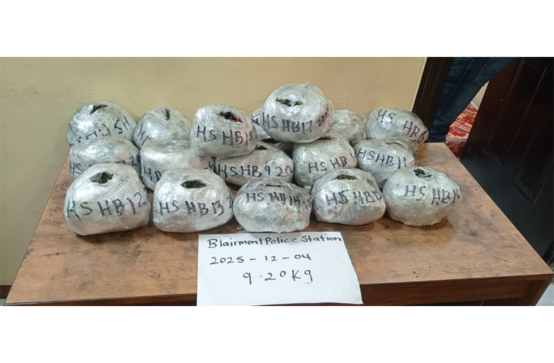 Both men were arrested and taken to the Blairmont Police Station, where the suspected cannabis was weighed in their presence and amounted to 9.20 kilograms. The parcels have since been lodged as evidence.