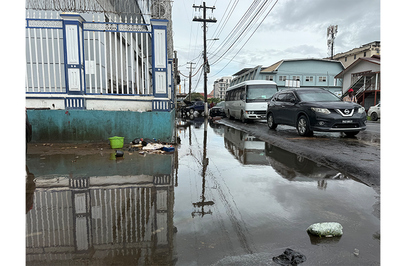 Additionally, this publication visited several areas in Georgetown. Among the flooded areas were Bel Air Park, Regent Street and Avenue of the Republic. In the Smyth and Quamina Streets area, persons were observed wading through almost ankle-high water while motorists navigated potholes and other obstacles that were on the flooded roadway.