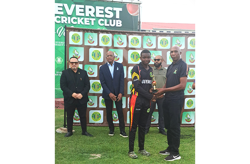 The pint-size 12-year-old left-handed Daniel Johnson looked the most technically correct batter in the local side, he hit a single boundary in his 26 from 72 balls to be the glue that held the innings together before he fell. Skipper ZDari Scantlebury after Khan, Guyana’s most aggressive batter, was caught and bowled for 12 with a couple of boundaries by left arm spinner Liam Sookram.