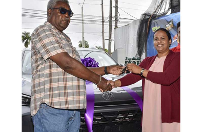 Among the prize recipients were the two grand prize winners, Cecil Lutchman of Belfield, East Coast Demerara, and Jerrick Southwell of Skeldon, Berbice, who each received a new MG sports utility vehicle. Both winners were present at the ceremony to collect the keys to their vehicles.